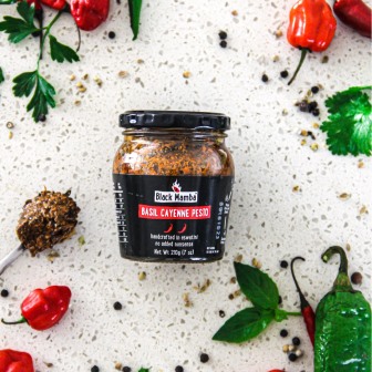 We just found the perfect ingredient for a flavour explosion on your snack platter, taking your wild experience a step further. Bright basil, nutty macadamias, tomato tang, and a whisper of cayenne combine in Black Mamba’s Basil & Cayenne Pesto for a truly standout spread.